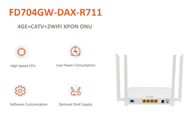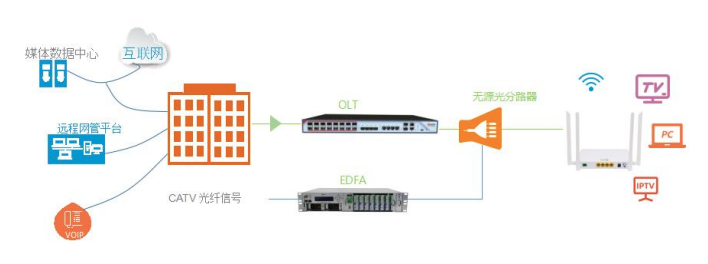- Single-fiber access, provides internet, CATV, WIFI multiple service
