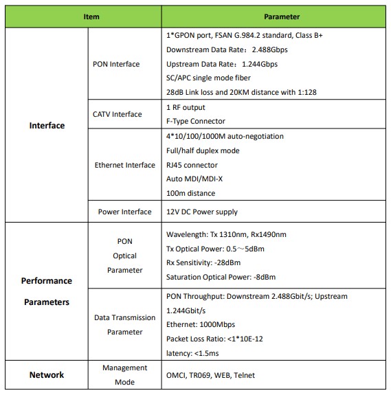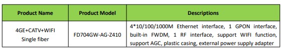 - Single-fiber access, provides internet, CATV, WIFI multiple service